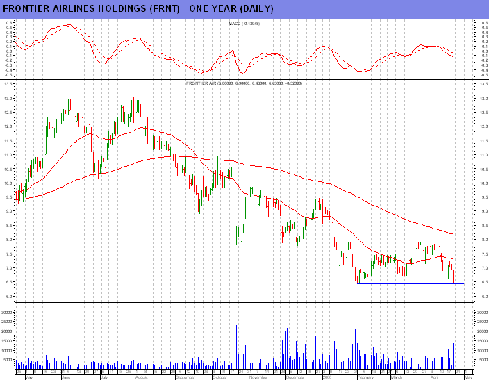 Company: Frontier Airlines Holdings Ticker: FRNT Price: $6.63 Opinion: Bullish Comments: Since
