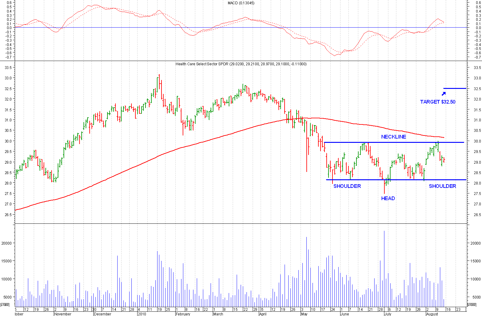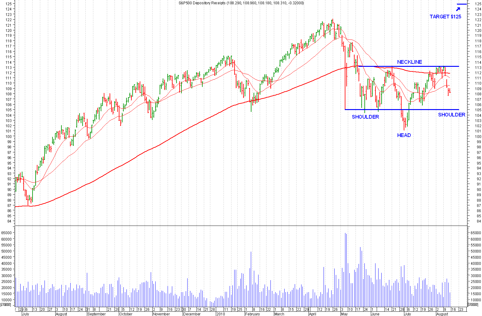There is always a point within every economic recovery, where people expect a double dip recession and we think this is where we currently reside along the economic cycle time-line. Employment always lags, housing lags, etc. Even when economic conditions are improving, a lot of economic indicators lag, resulting in a doom and gloom mindset and stock market weakness. This inevitable disconnect results in undervalued securities and is precisely when you should be buying. The following charts depict what appears to be 'head and shoulders bottoms' and one potential 'triple bottom.' Volume has been drying up significantly as these patterns unfold, which is tremendously bullish. There is a high probability that